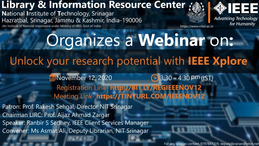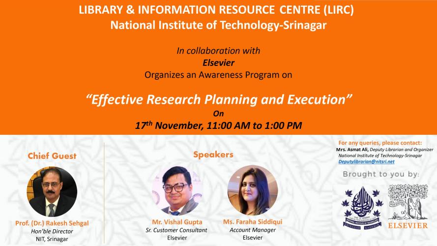The history of LIRC dates back to 1960 with the inception of National Institute of Technology. NIT Srinagar Library supports Teaching, Research & and other related programmes of the Institute. The Library has a good collection of a 74769 documents that comprises of Books, Journals, Thesis, Video cassettes, Learning Resources (LRs) & Compact discs in the field of Engineering, Science, Management, Literature & Humanities.